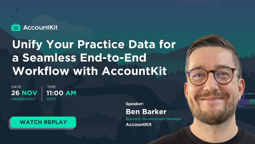 Learn how to build a connected, practice-wide workflow that gives your team a clear view of every job, every document, and every client. Ben Barker will walk through how AccountKit brings all your systems together, and gives you one place to manage tasks, compliance and client structures.